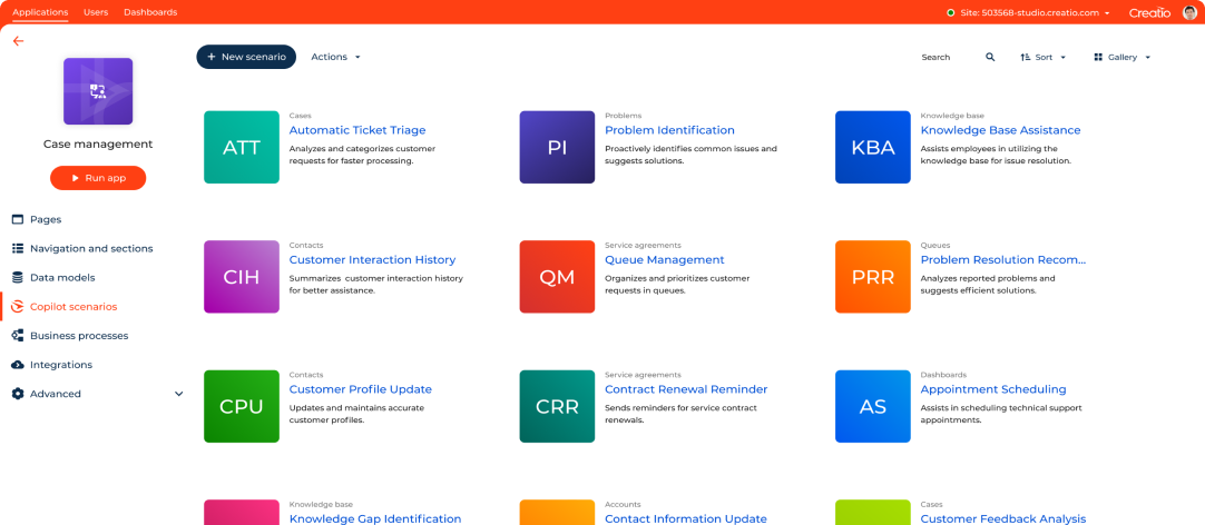 Creatio.ai is a centralized workspace to configure and deploy GenAI use cases, including use cases for CRM and