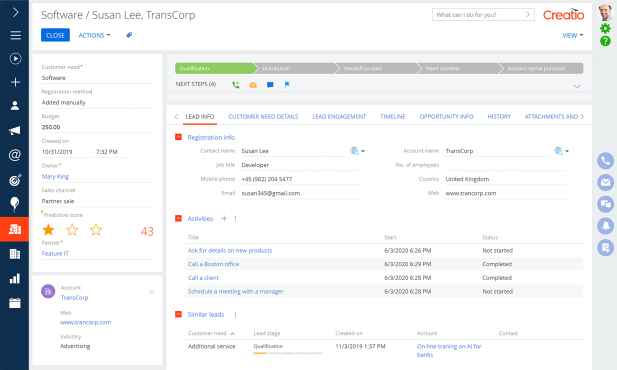 Müşteri tercihlerinizin ve gereksinimlerinizin bütünsel bir görünümünü geliştirmek için tüm temas noktalarından müşteriyle ilgili verileri uygulayın. Müşterilerle daha hedefli iletişim kurmak için 360° müşteri deneyimi kullanın.